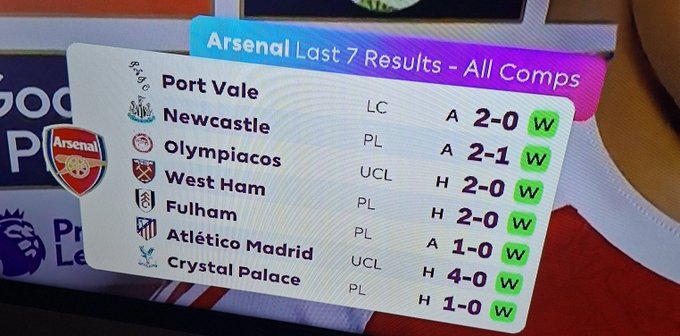 Meanwhile, Arsenal are showing what a complete, balanced side looks like. Their solidity at the back has been remarkable, just one goal conceded in their last seven games across all competitions, that lone goal coming from a corner against Newcastle United.
